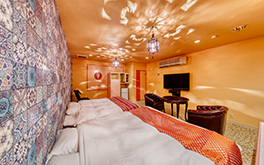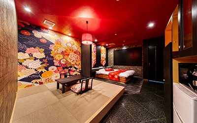艶やかな色使いされた雰囲気が、花魁になったような気分になれるコンセプトルームです。