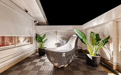 露天風呂や庭園など、“癒しのワンシーン”をテーマににしたお部屋をご用意。